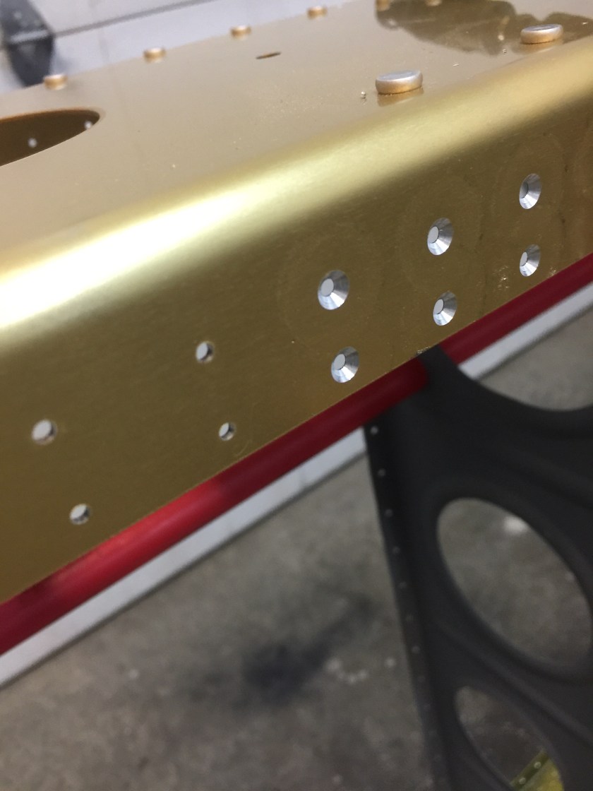There is a definite order in installing the wing skins. First, the leading edge (built off the wing) is installed. Then the top main skins are installed. The wing is then rigid enough to remove from the stand and install the ailerons, flaps and work on the internal details. After that is complete, the wing is laid, top down, on a large table and the bottom skins are riveted.