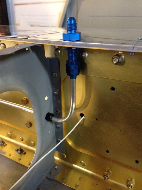 I installed the pitot line and fittings as indicated on the drawings. I installed the snap bushings in the 7/16″ holes for the Pilot line in the wing ribs, putting the low profile face of the bushing on the flange side of the rib, to ease access to the skin rivets later.