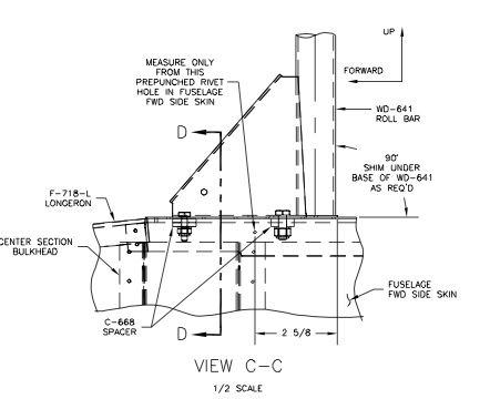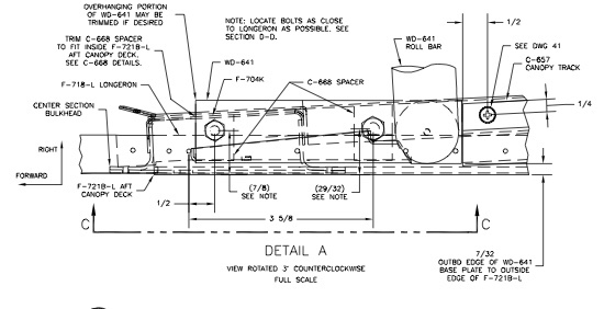 I placed the Wd-641 Roll Bar on the fuselage in the position shown on DWG 42, View C-C.