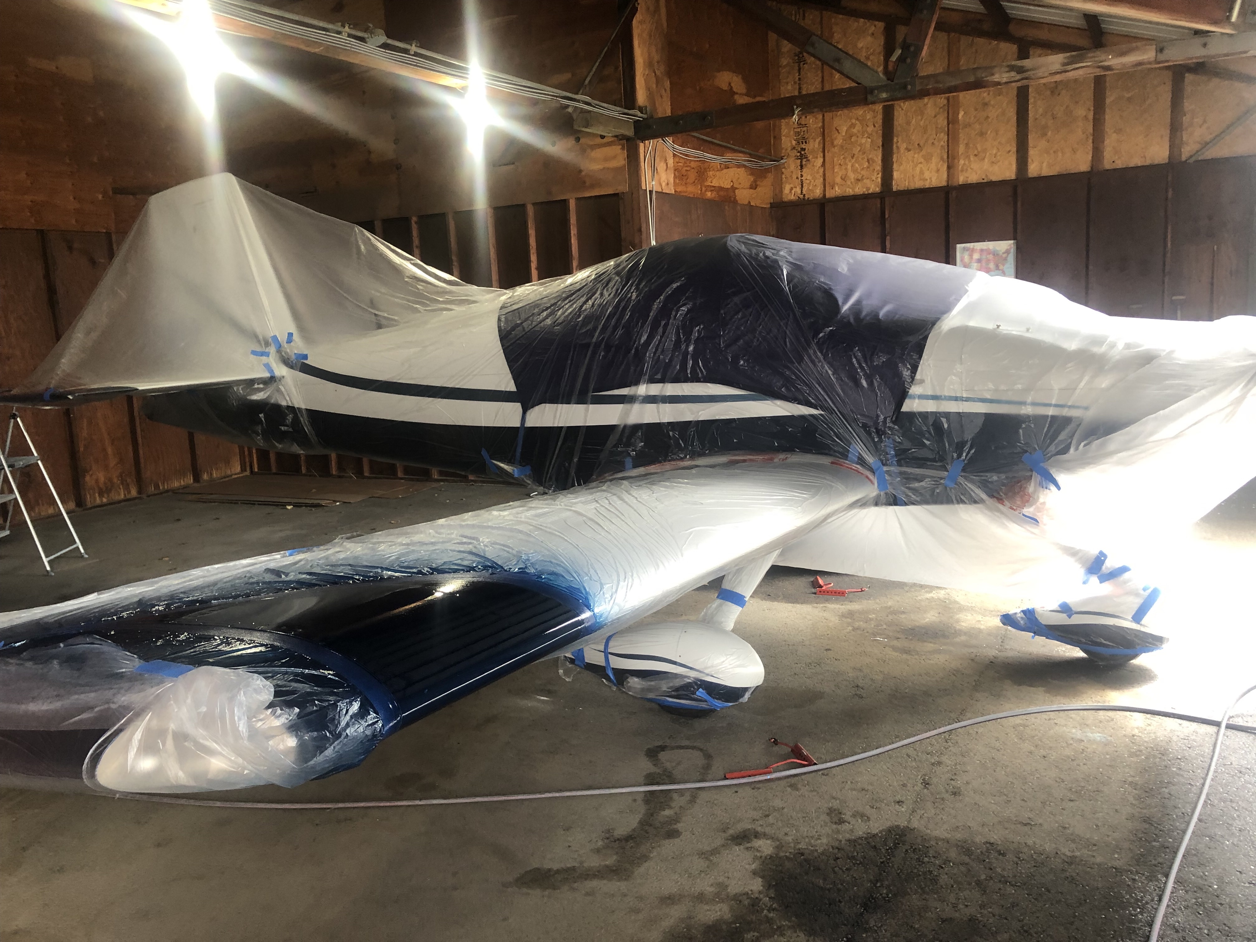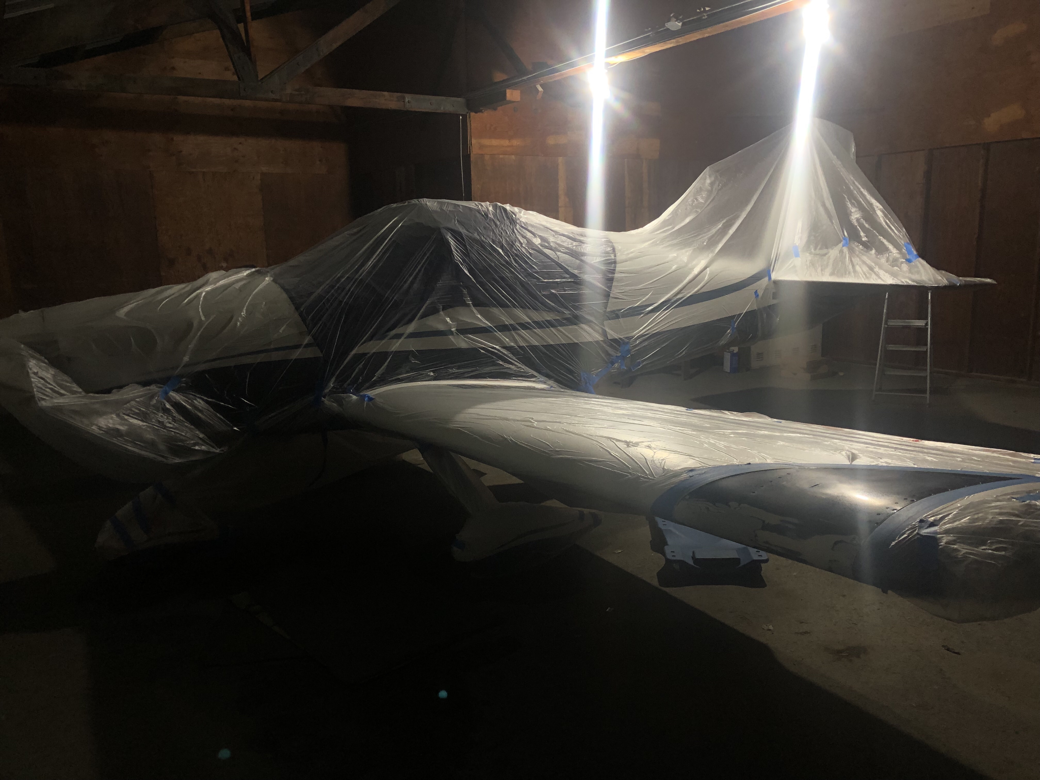 Changed hole covers on wheels from 5/8” to 3/4”. Prepared leading edge of wing tips for repainting.