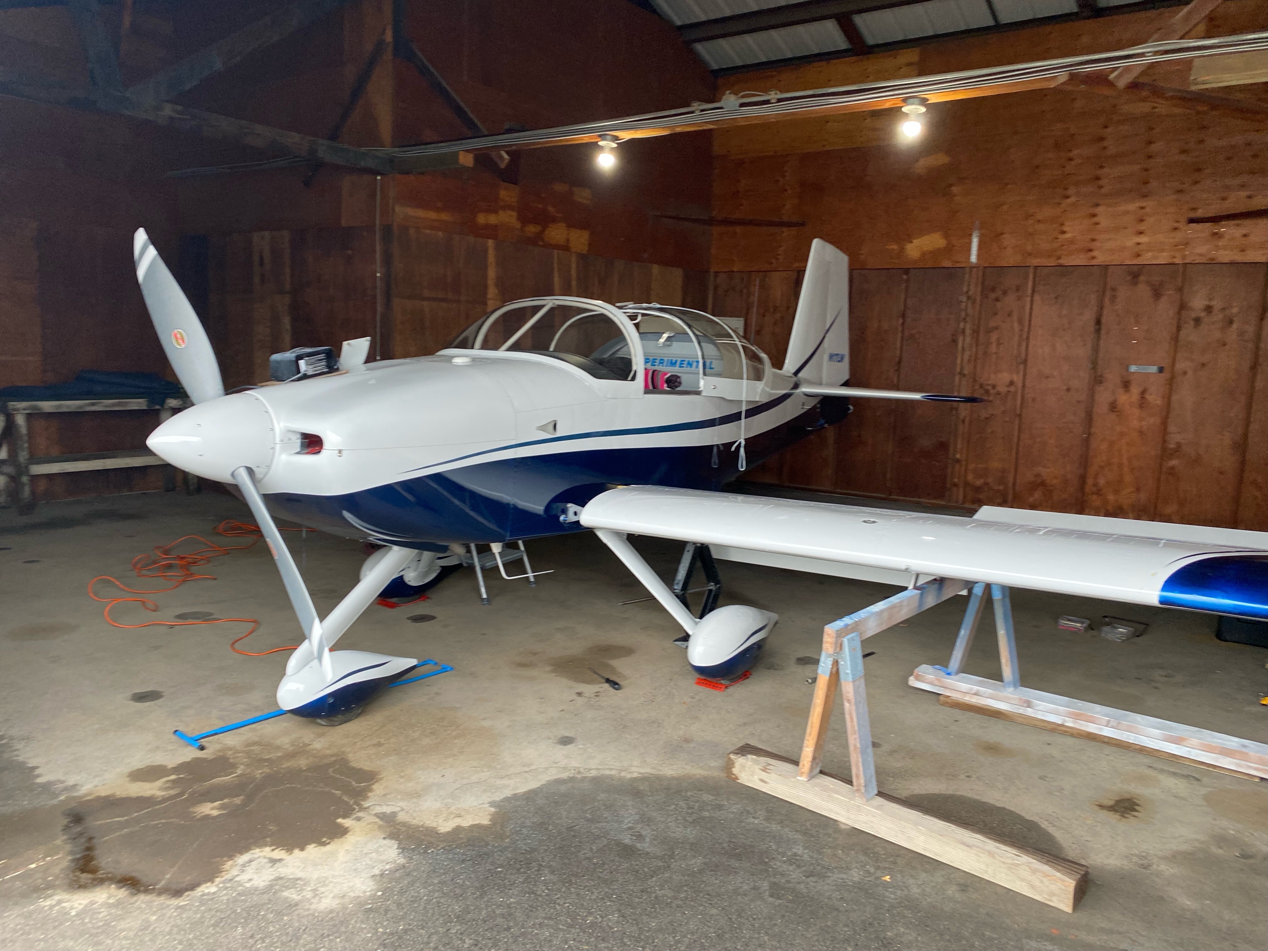 Finished wing root fairings, tested radio with call to Felts Tower (loud and clear), cranked engine (177 rpm).