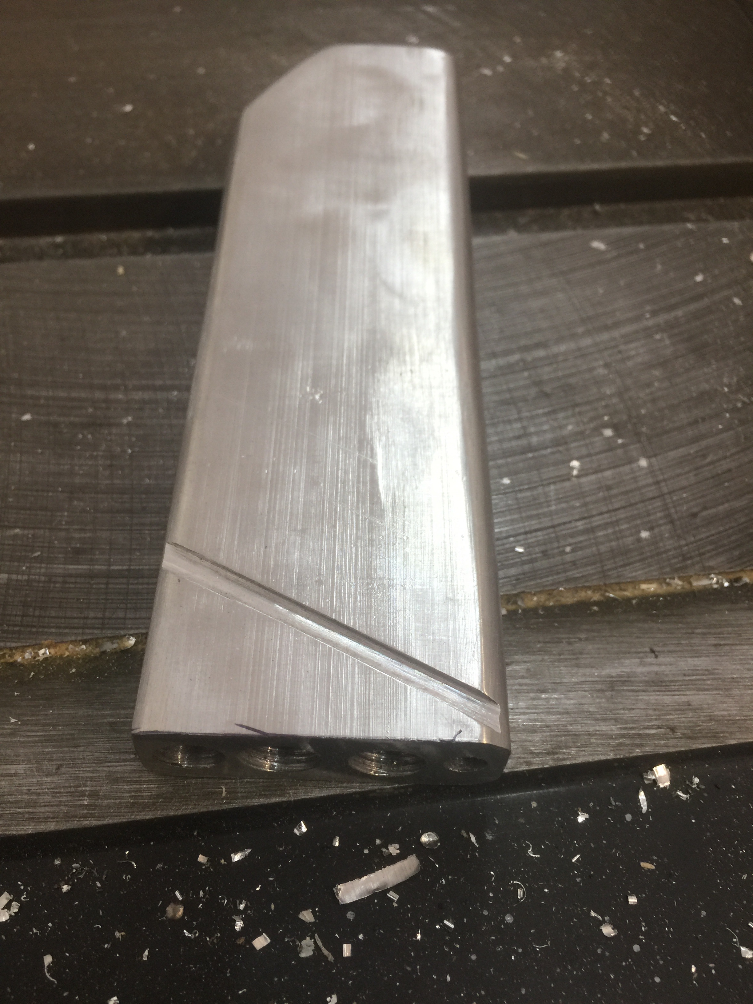 Final trim of wheel fairing mounting plate buildup. Dimpled bottom center skin wing mounting holes. Added bottom countersunk platenuts to wing.