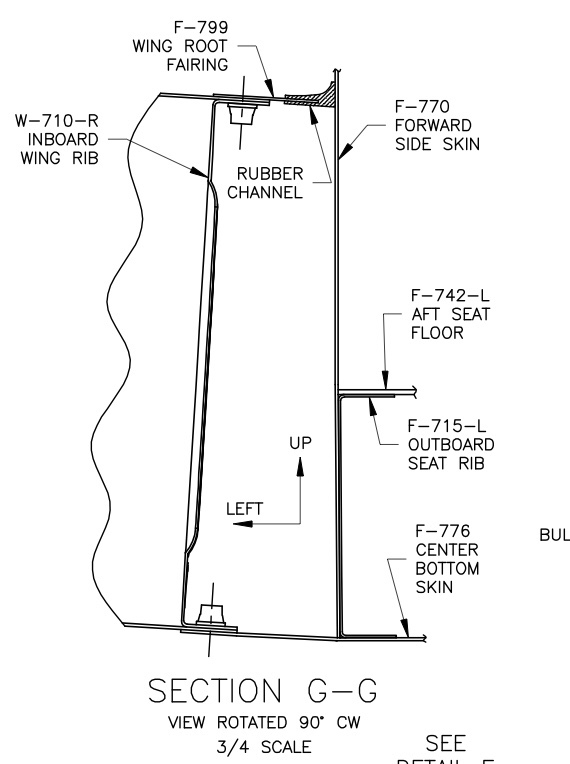 I installed the F-799 wing root fairing as shown on DWG 38, Wing Root Fairing Installation Detail, and Section G-G.