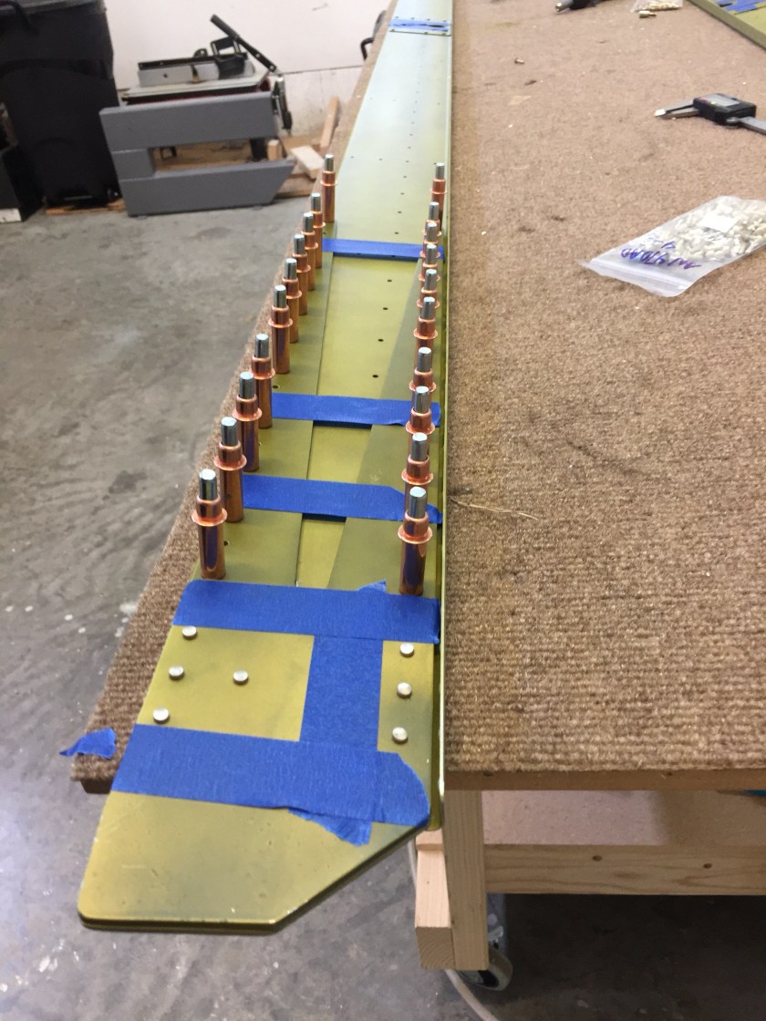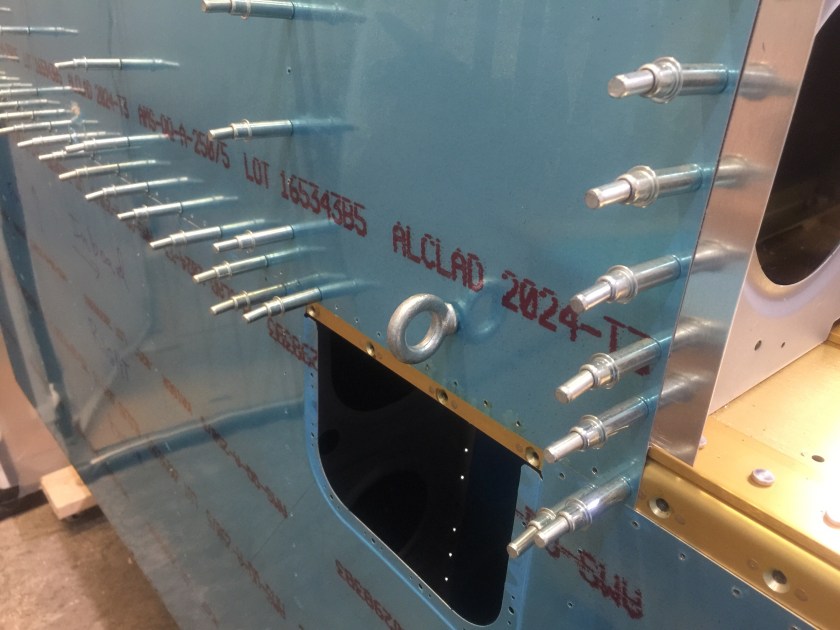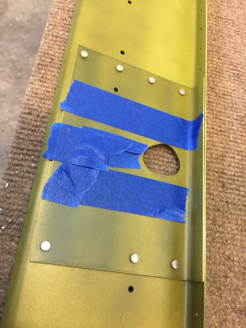 I covered the aft tooling holes in the outboard end ribs by riveting on a small plate. After each session I cleaned everything that I did not want to have a permanent coat of sealant. It was much easier to clean up before the sealant set.